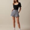 The are versatile piece that combines feminine style with modern comfort. The pockets and plaid design adds a touch of elegance and pairs well with a variety of tops. The high waisted design creates a classic silhouette with a modern twist, perfect for any occasion. Whether dressed up with heels or dressed down with sneakers, the shorts are must-have addition to any wardrobe.