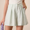 These stylish shorts feature a trendy green plaid pattern that adds a playful touch to your look. The wide-leg design ensures maximum comfort and freedom of movement, while the convenient pockets add practicality. Perfect for warm weather, these shorts are ideal for weekend outings, picnics, or casual get-togethers. Pair them with a simple tee or a chic blouse for a versatile, effortlessly cool outfit that stands out.
