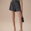 Designed with a modern high-waisted silhouette, these shorts offer a flattering fit that accentuates the waist while providing comfort and style. The pleated front adds a touch of sophistication, making them suitable for both casual and dressier occasions.