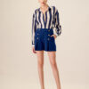 Featuring a high-waisted design that accentuates the waist, these shorts offer a flattering and comfortable fit. The pleated detailing adds a touch of sophistication, making them suitable for both casual and dressier occasions.