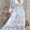 V neck, wrap design, 3/4 sleeve, floral pattern, plus size midi dress for women